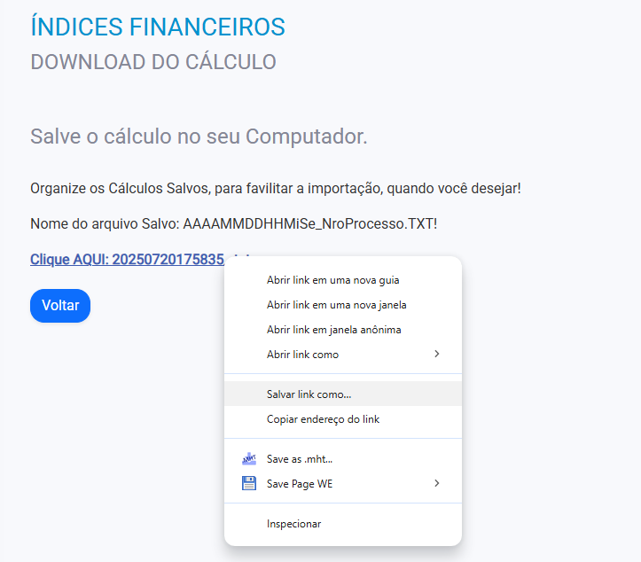 4) APÓS ESCOLHA O INDICE DE ATUALIZAÇÃO - PODE SER ATÉ 3 ÍNDICES.
