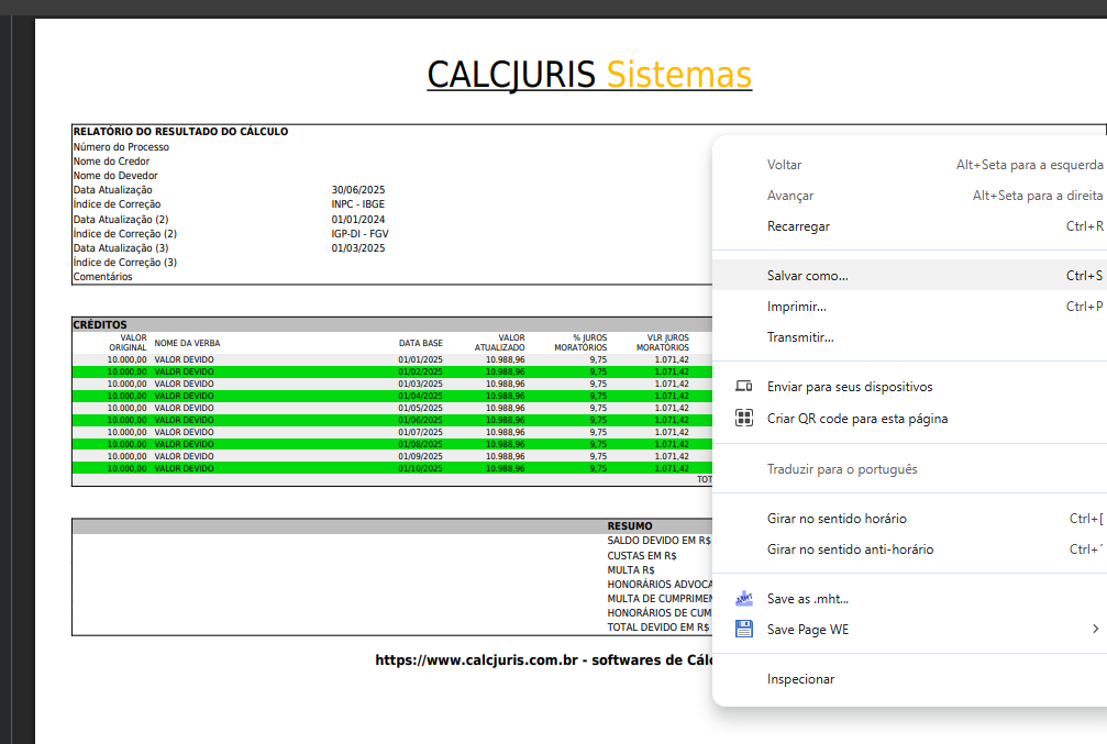 20) O RELATÓRIO FINAL APURADO. PODEMOS SALVAR CLICANDO O BOTÃO DIREITO DO MOUSE E SELECIONAR "SALVAR COMO". SALVA O PDF NA PASTA ESCOLHIDA.